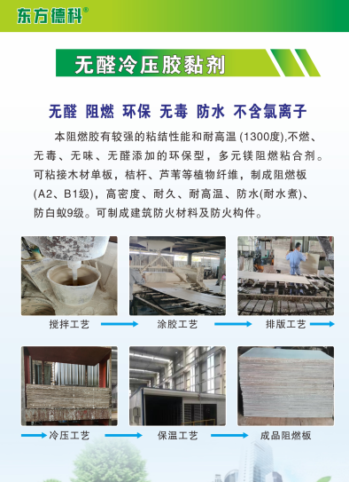 无醛阻燃冷压胶水(也叫多元镁阻燃胶粘剂)适合:胶合板,复合阻燃板,装饰板,家具板,木质多功能板,建筑防火材料及防火构件,